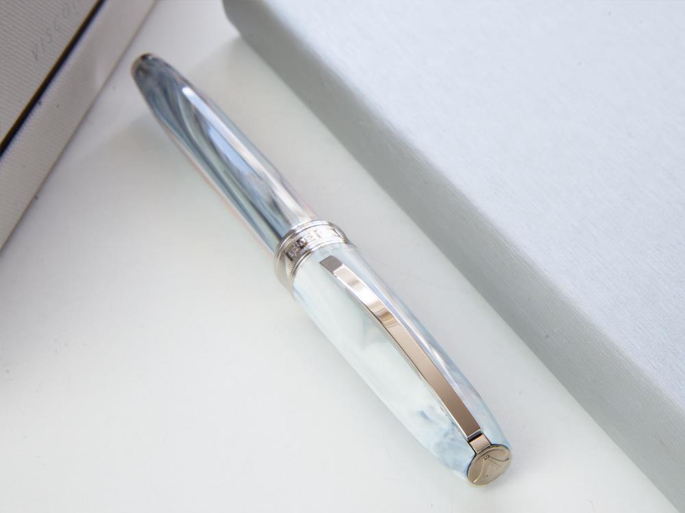 • The Visconti Van Gogh fountain pen set "Old vineyard with peasant woman" is inspired by one of Vincent Van Gogh's last paintings, painted in 1890, in the last months of his life. The "Old vineyard with peasant woman" edition is presented in an elegant white box with a new Visconti logo and an image of the Van Gogh painting to which it is dedicated. The combination of white, gray and blue tones is reminiscent of winter, motifs and festive season. The fountain pen features a palladium-plated steel nib engraved with the artist's signature. The set includes a bookmark and an inkwell, matching the fountain pen, which recalls the same colors used in the mentioned painting.
