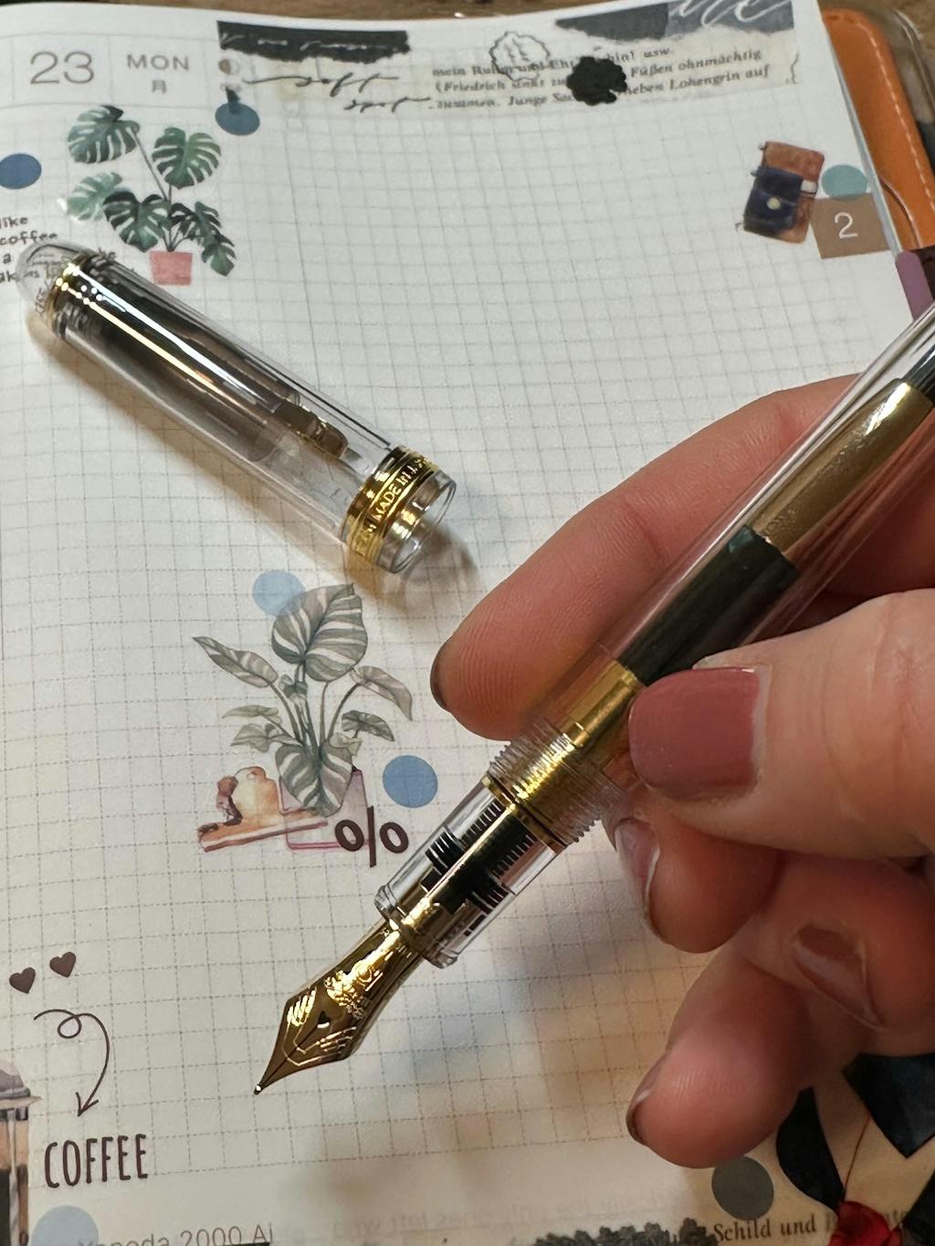A wonderful very precise nib, very smooth. The demonstrator shows the ink flow perfectly.